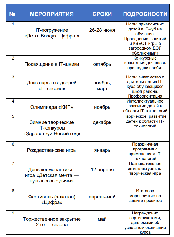 План мероприятий для детей на 2025-2026 учебный год