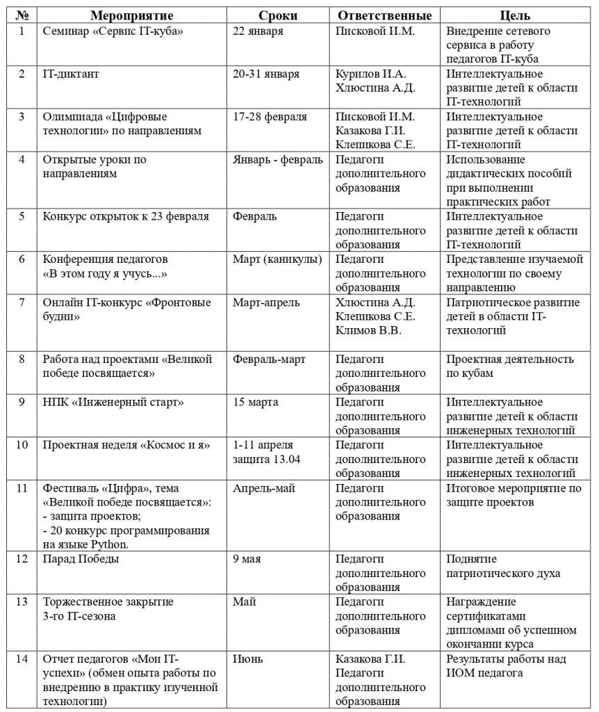 План мероприятий на 2023-2024 учебный год